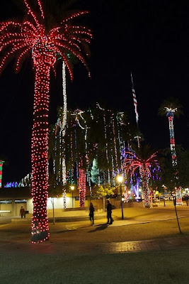 Such was the case as I admired the decorations of the 100+ trees in the park. The one below was my turning point--the point where I changed from admiring the display to thinking to myself: "How many lights are on this tree below?" "How did they wrap the lights around the tree in a relatively uniform weave?"